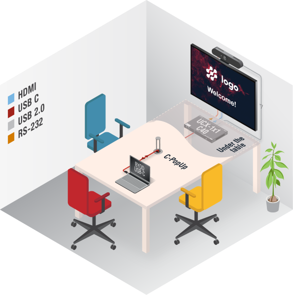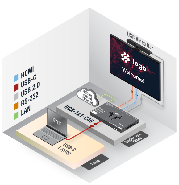 The UCX-1×1-C40 USB Type-C docking station enhances and extends the possibilities of a meeting room and allows meeting participants to easily use their own devices such as laptops, and preferred video conference platforms while also utilizing the available assets of the meeting space, just like the HDMI displays, room cameras and other USB peripherals.