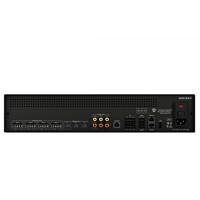 - 4 units with a Smart Host provides 18 total zones (16 amplified, 8 pre-amp) and 4 built-in streams of Savant Music.